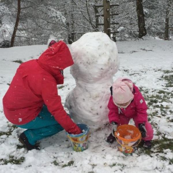 Rabe Socke erklärte uns den Körper etwas genauer. Welche Unterschiede gibt es bei uns Kindern? Wir waren neugierig und haben viele Fragen gestellt. Jeder sieht etwas anders aus. Jemand ist kleiner, der andere grösser, einer hat braune Haare, der andere blonde Haare. Meine sind ganz kurz und deine Haare sind ganz lang. Wo ist denn meine Nase oder welche Augenfarbe hast du? Was passiert eigentlich mit unserem Essen im Bauch? Was macht unser Herz? Alles Fragen die uns Rabe Socke geduldig beantwortet hat. Draussen konnten wir im Januar im Schnee einen Schneemann bauen und schlitteln gehen. Wir stimmen uns jetzt schon etwas auf den nächsten Monat ein, denn dann beginnt endlich die Fastnachtszeit und wir können uns verkleiden.