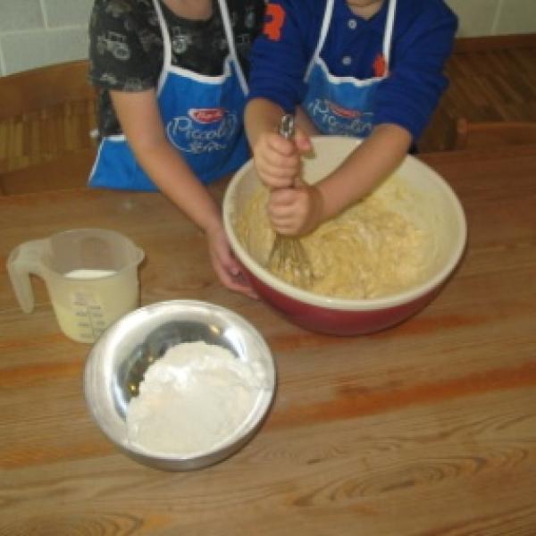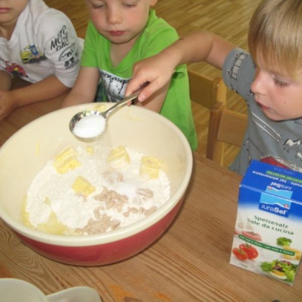 Im September durften wir Kinder beim Zubereiten der Mahlzeiten helfen, sei es beim Zvieri, Salat scheiden, Zopfteig vorbereiten, Kuchen backen und vieles mehr. Wir erforschten unsere Küchengeräte und machten Musik mit Löffeln und Pfannen.