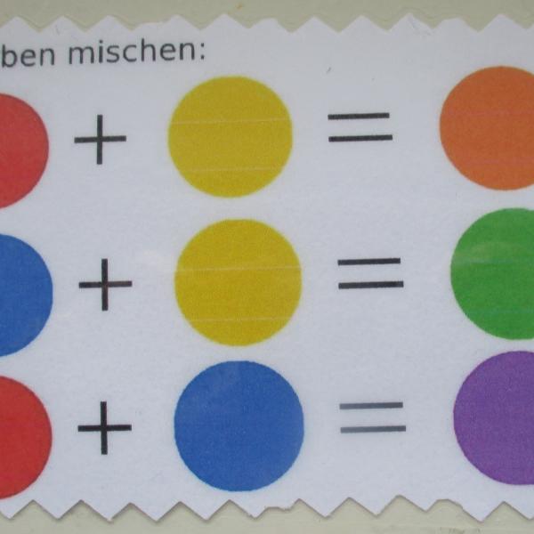 In unserem Mal-Atelier haben wir zuerst mit einem Farbschema die Namen der Farben geübt. Habt ihr gewusst dass, Rot, Blau und Gelb die drei Grundfarben sind? Aus diesen drei Primärfarben lassen sich alle anderen Farben mischen die wir kennen. Wenn zwei Grundfarben kombiniert werden, entstehen sogenannte Sekundärfarben. Wenn man zum Beispiel Rot und Blau mischt, erhält man Violett; Gelb und Rot ergibt Orange; Blau und Gelb ergeben Grün. Wenn alle drei Grundfarben vermischt werden, ergibt dies Schwarz. Das haben wir natürlich direkt ausprobiert. Mit Schürze und Pinsel ausgestattet, durften wir unserer Kreativität freien Lauf lassen und mit Wasserfarben unsere Farbmischungen auf ein grosses Blatt an der Wand malen.