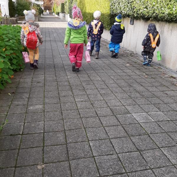 Dieses Jahr wurde der Laternenumzug mit den Eltern und Kindern leider abgesagt. Dies hinderte uns aber nicht daran, unseren eigenen Laternenumzug mit den Kindern durchzuführen. Anfang November bastelten wir gemeinsam mit den Kindern die Laternen und in der darauf folgenden Wochen machten wir jeden Tag einen Laternenumzug durch unser Quartier. Wir sangen auf dem Umzug Laternenlieder und präsentierten unsere selbstgebastelten Laternen. Unsere Bäume rund um unserer Kita, haben viele Blätter verloren. Dies war ideal um einen Laubhaufen zu bauen und damit viel Spass zu haben.