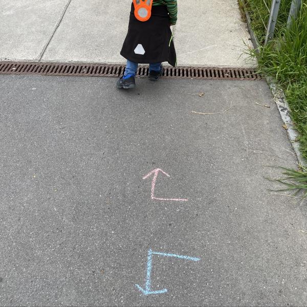 Wir haben zwei Gruppen gebildet und sind in einer abenteuerlichen Schnitzeljagd gegeneinander angetreten. Der Start war in unserer Kita. Unterwegs haben wir kleine Hinweise auf dem Boden entdeckt, denen sind wir gefolgt. Am Ende haben wir uns nicht nur als ganze Gruppe wieder gefunden, wir durften sogar noch nach einem Schatz suchen. Haben ihn wir ihn wohl gefunden und was war da drin versteckt?