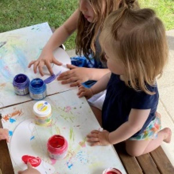 Der Sommer ist da!!! Wir geniessen das heisse Wetter beim Baden, Wasserschlachten machen und beim Plantschen. Im Garten entsteht grade unser neuer Barfussweg, bei dem die Kinder fleissig mithelfen und bereits viel Spass beim Ausprobieren haben. Beim Malen mit Fingerfarben dürfen die Kinder ihr eigenes "Sonnencap" gestalten.