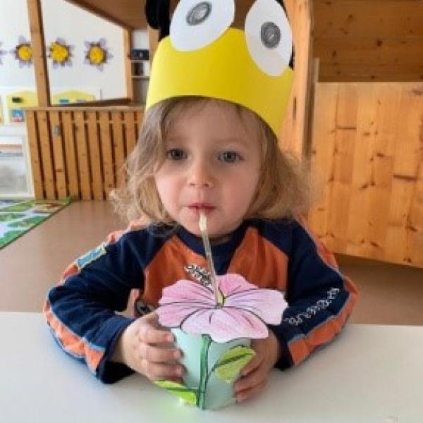 Im April drehte sich bei uns alles rund um die Bienen. Unter anderem durften wir erforschen, wie die Bienen trinken. Mit einem Strohhalm haben wir Sirup getrunken. Dieser stellte den süssen Nektar dar. Gemeinsam haben wir einen Ausflug zum Bauernhof Burgrain gemacht. Dort hat uns der Imker alles über die Bienen und seine Arbeit erzählt. Das war sehr spannend.