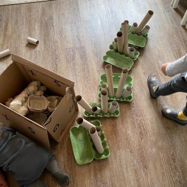 Während der nächsten drei Monate wollen wir unseren Kita-Alltag mit weniger Spielzeug und mehr Wertlosem und Naturmaterialen gestalten. Die Kinder dürfen sich im konstruktions- und kreativen Spiel ausprobieren. Dabei sind der Phantasie keine Grenzen gesetzt. Wir starteten mit Karton und Pet. Es entstanden bereits tolle Kunstwerke und viele spontane Sequenzen.