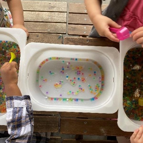 Im Juli erfahren wir viel über die spannende Unterwasserwelt. Wer lebt im Wasser und was wächst dort? Was ist der Unterschied zwischen Seen, Bächen und dem Meer? Wir experimentieren mit Wasser, Perlen, Sand und Muscheln. Auf unseren Ausflügen besuchen wir die Fische in der Ron.