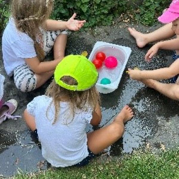Wir spielen mit Wasser, machen tolle Regentropfenbilder und experimentieren mit Erde und Matsch. Am Himmel beobachten wir Flugzeuge und lassen Seifenblasen fliegen. Aus buntem Papier basteln wir ein Lagerfeuer und bei unserem Sommerfest braten wir Würste und Cervelats.