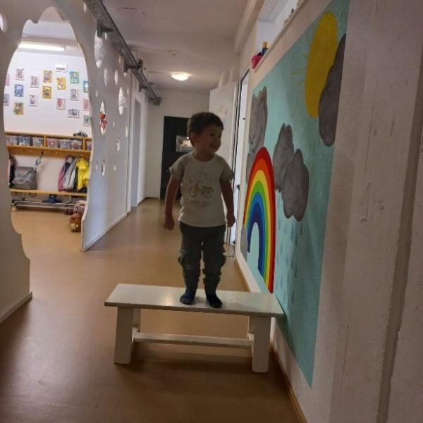 Im Monat September drehte sich alles um das Thema Apfel. Auf dem Spaziergang hielten wir Ausschau nach Apfelbäumen und versuchten herauszufinden, welche Apfelsorte der Baum trägt. Auch bewiesen wir unser Können beim werfen und versuchten die Löcher von unserem selbstgebastelten Baum zu treffen.