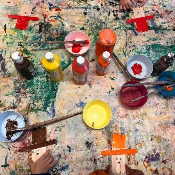 Basteln einer Vogelscheuche, mit verschiedenen Materialien und ganz viel Selbstbestimmung der Kinder.