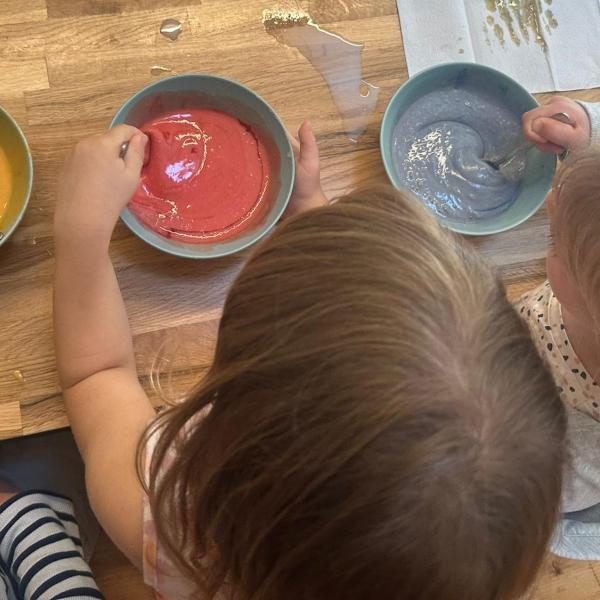 Ein weiteres Highlight war unsere bunte Muffin-Backaktion: Die Kinder durften den Teig selbst färben und individuelle Regenbogen-Muffins gestalten – lecker, farbenfroh und mit viel Spaß verbunden!