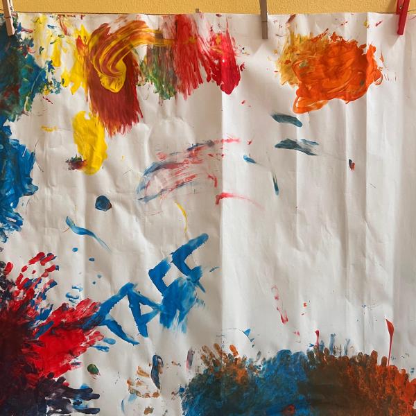 Zum Abschluss gestalteten wir ein gemeinsames Farbenbild, das jetzt unsere Kita-Räume schmückt.