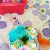 Wir verkleiden uns und müssen uns in Acht nehmen vor gefährlichen Tigern, Piraten oder Geistern. Wir basteln Rasseln, Konfettis… weiter